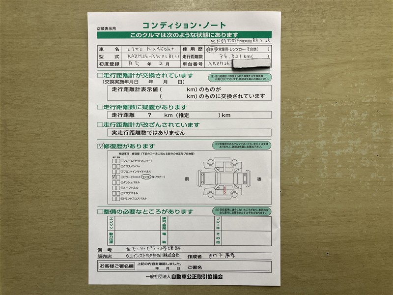 - 「修復歴あり」の場合、修復部位の詳細につきましては、販売店へお問合せください。