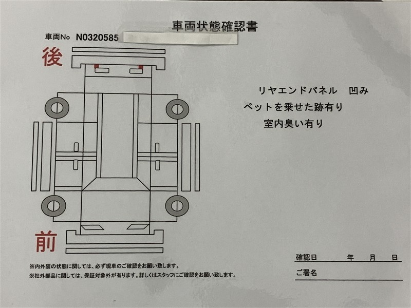 - 「定期点検整備なし(要整備箇所あり)」の場合、整備箇所につきましては、販売店へお問合せください。