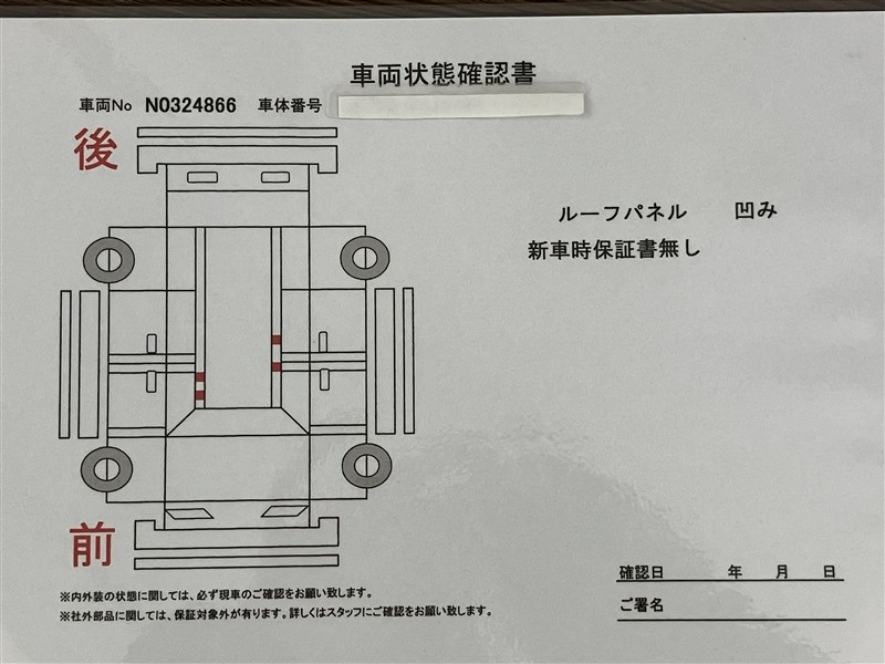 - 「定期点検整備なし(要整備箇所あり)」の場合、整備箇所につきましては、販売店へお問合せください。