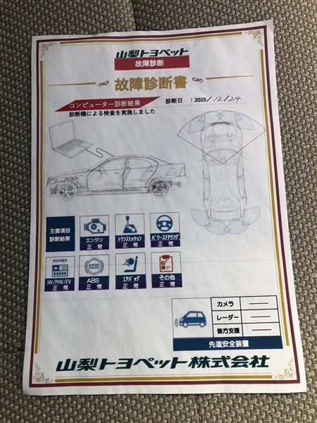 - 「定期点検整備なし(要整備箇所あり)」の場合、整備箇所につきましては、販売店へお問合せください。