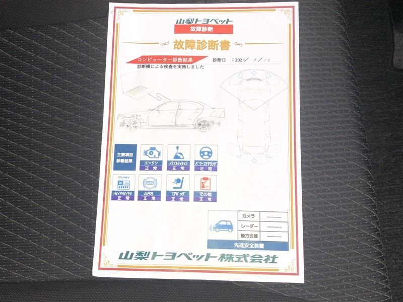 - 「定期点検整備なし(要整備箇所あり)」の場合、整備箇所につきましては、販売店へお問合せください。