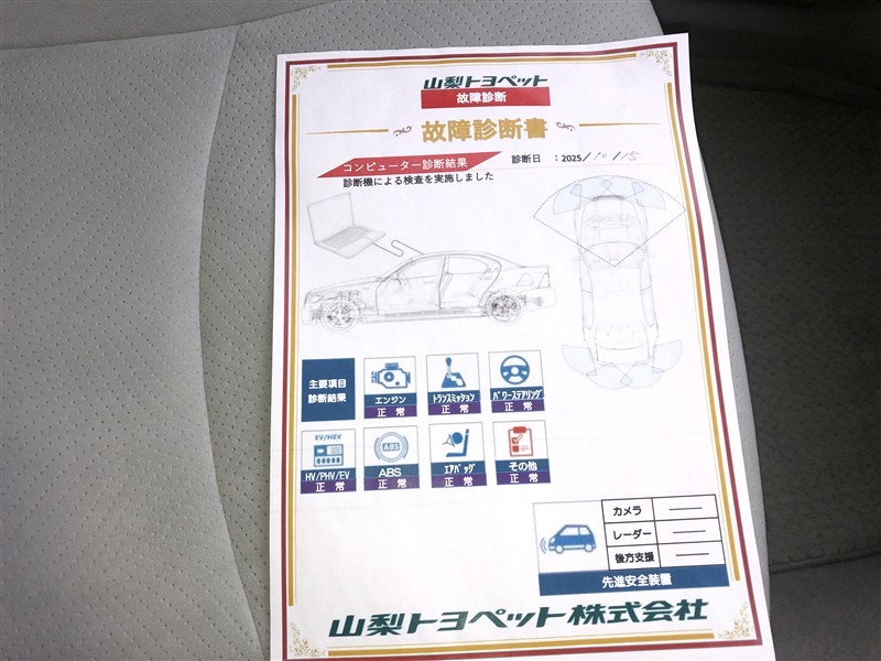 - 「定期点検整備なし(要整備箇所あり)」の場合、整備箇所につきましては、販売店へお問合せください。