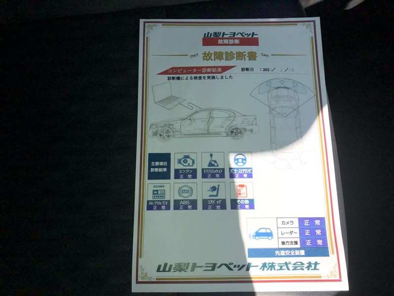 - 「定期点検整備なし(要整備箇所あり)」の場合、整備箇所につきましては、販売店へお問合せください。