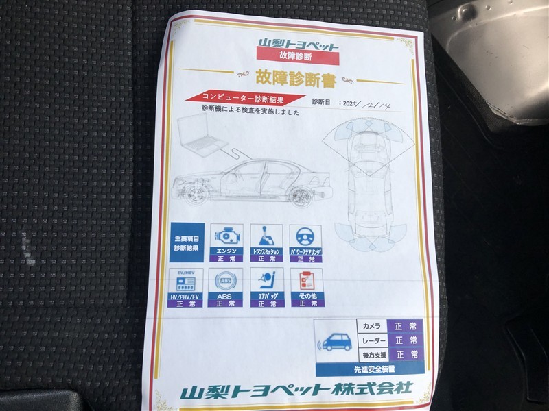 - 「定期点検整備なし(要整備箇所あり)」の場合、整備箇所につきましては、販売店へお問合せください。