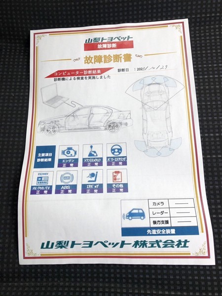 - 「定期点検整備なし(要整備箇所あり)」の場合、整備箇所につきましては、販売店へお問合せください。