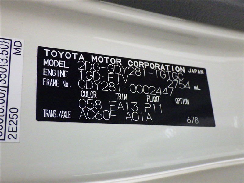 | 排気量 | 2,800cc | 全高 | 196cm |