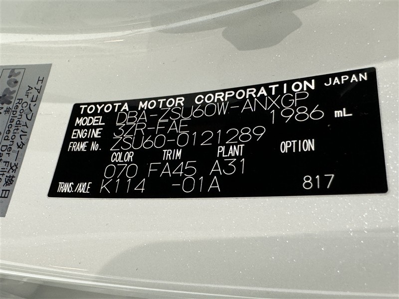 | ボディカラー | ホワイトパールクリスタルシャイン | 修復歴 | なし |