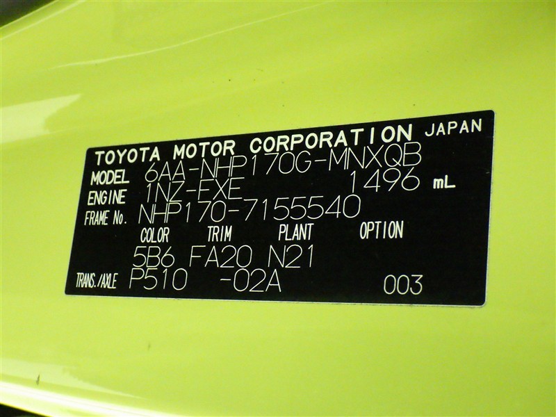 | 駆動方式 | FF | 乗車定員 | 5名 |