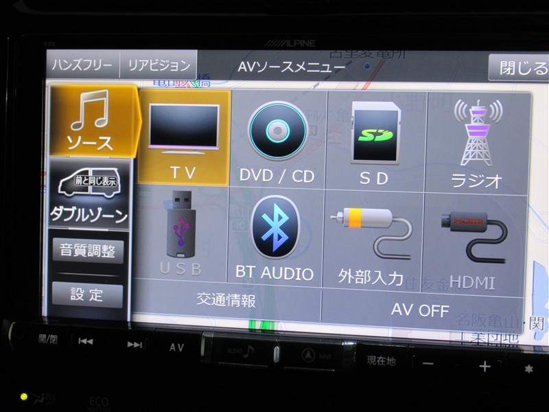 | カーナビ/DA | メモリーナビ(IN) またはナビ付きDA | TV | 地デジ(フルセグ) |