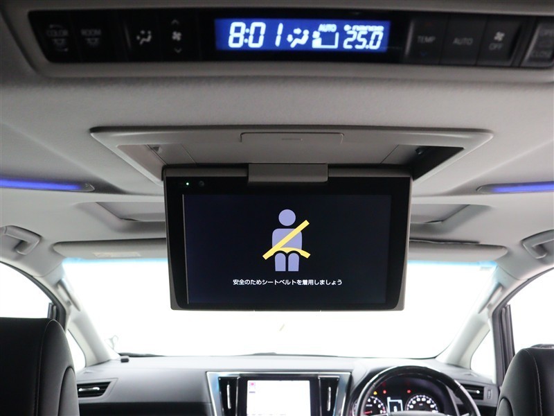 存在感のある大きなボディ、後席モニター・サンルーフ・パワーバックドアなど豪華装備です。