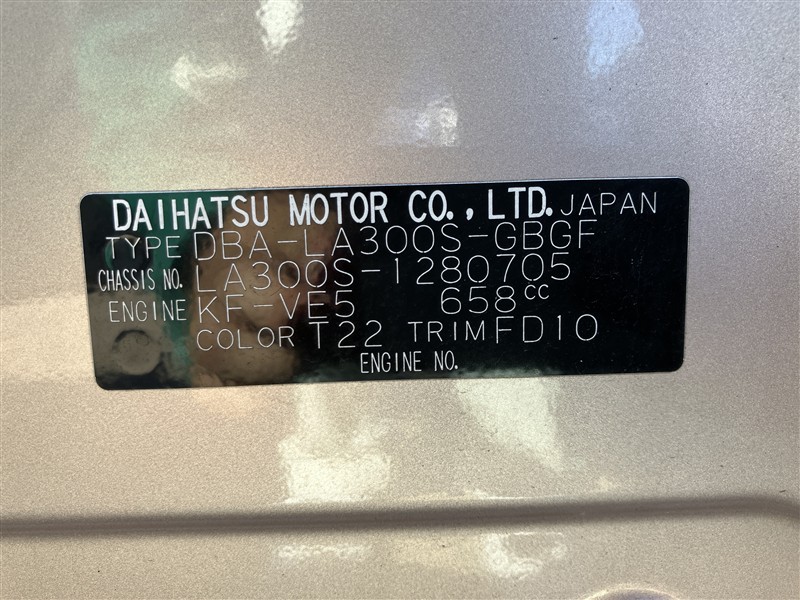店舗管理ナンバー【165010821631】車台番号(下3桁)【705】