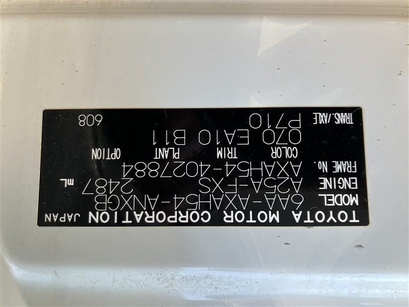 店舗管理ナンバー【165010821860】車台番号(下3桁)【884】