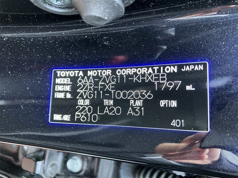 店舗管理ナンバー【165012666802】車台番号(下3桁)【036】