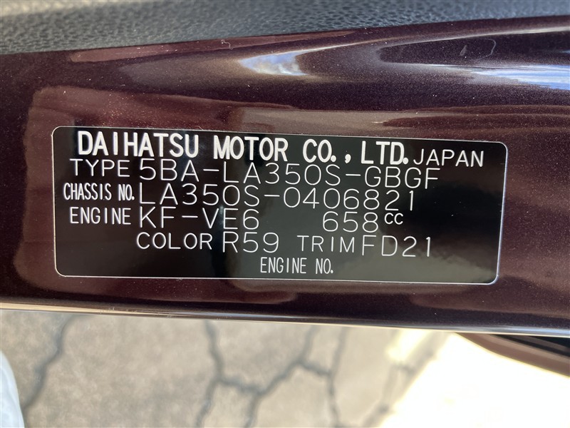 店舗管理ナンバー【165019813932】車台番号(下3桁)【821】