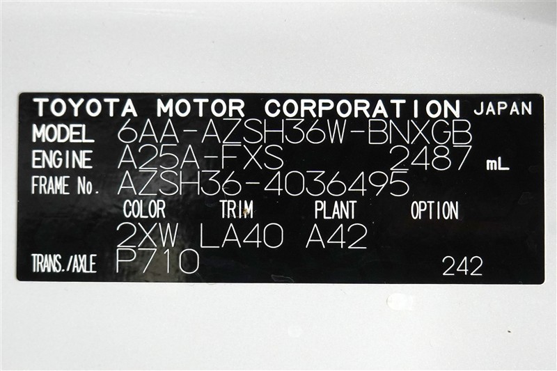 | 排気量 | 2,500cc | 全高 | 156cm |