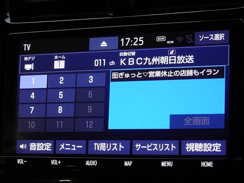 | カーナビ/DA | メモリーナビ(IN) またはナビ付きDA | TV | 地デジ(フルセグ) |