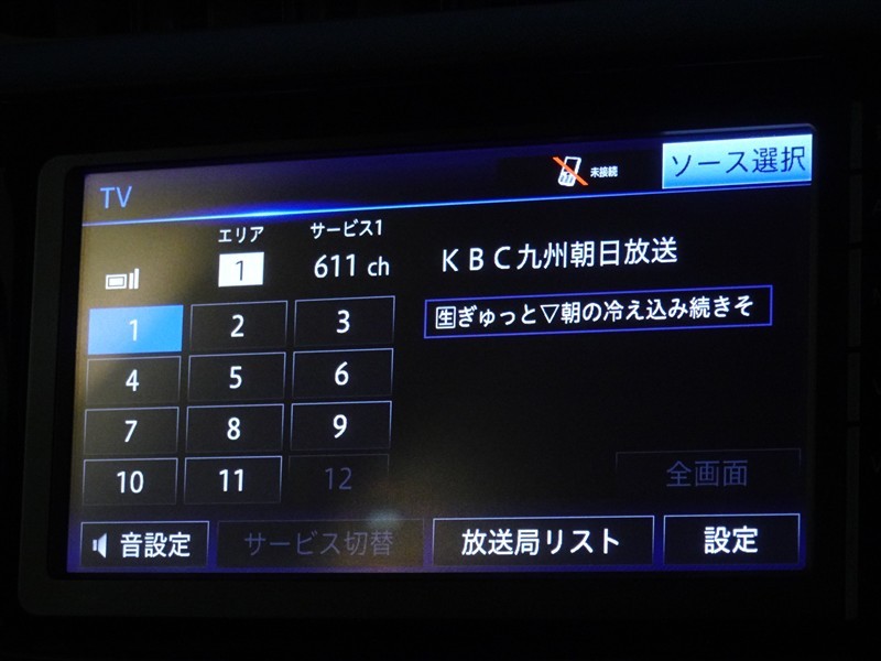 | カーナビ/DA | メモリーナビ(IN) またはナビ付きDA | TV | 地デジ(ワンセグ) |