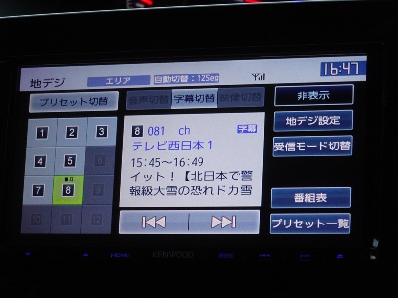 | カーナビ/DA | メモリーナビ(IN) またはナビ付きDA | TV | 地デジ(フルセグ) |