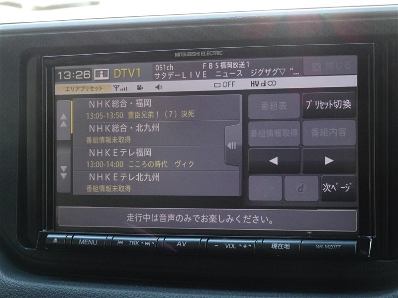 | カーナビ/DA | メモリーナビ(IN) またはナビ付きDA | TV | 地デジ(フルセグ) |