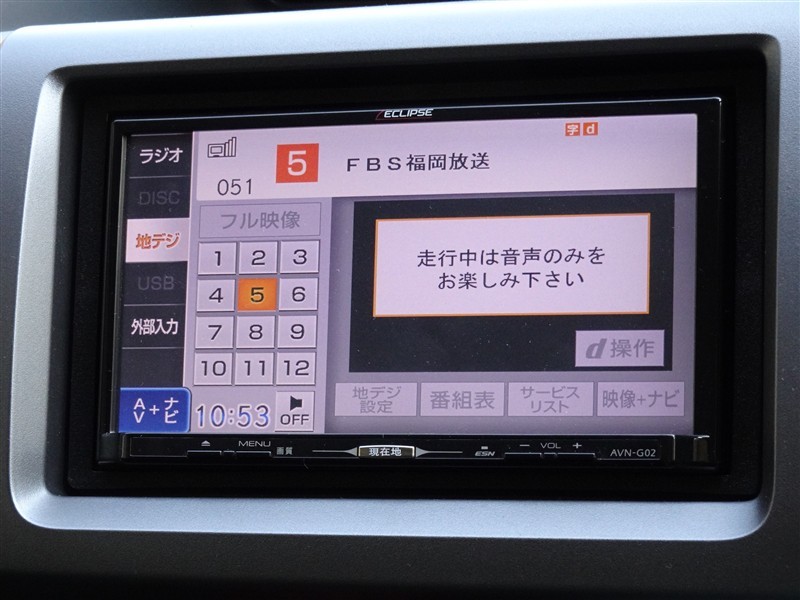 | カーナビ/DA | メモリーナビ(IN) またはナビ付きDA | TV | 地デジ(フルセグ) |