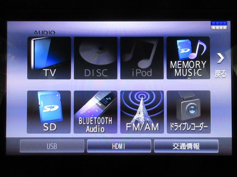 | カーナビ/DA | メモリーナビ(IN) またはナビ付きDA | TV | 地デジ(フルセグ) |