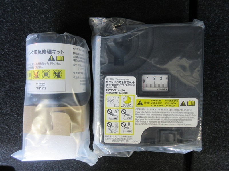 - パンク修理キット搭載