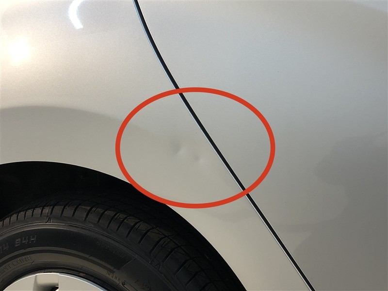 テニスボール大程度のキズを伴うヘコミ