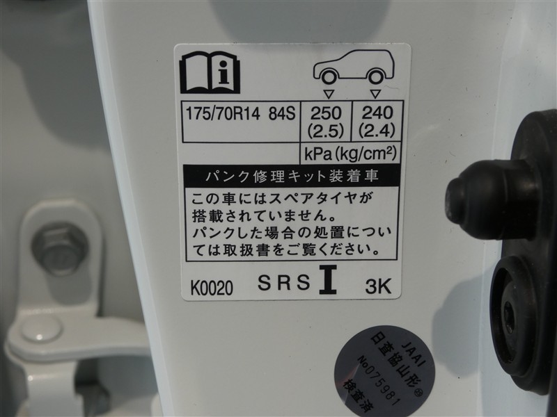 - パンク修理キット搭載