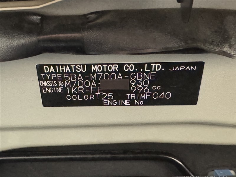 店舗管理ナンバー【332010158290】車台番号(下3桁)【930】