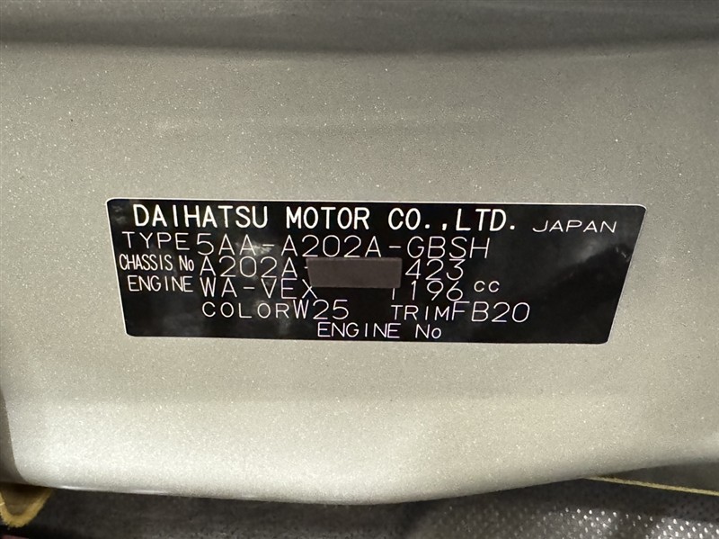 店舗管理ナンバー【332010379890】車台番号(下3桁)【423】