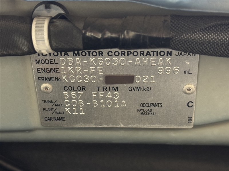 店舗管理ナンバー【332010458455】車台番号(下3桁)【021】