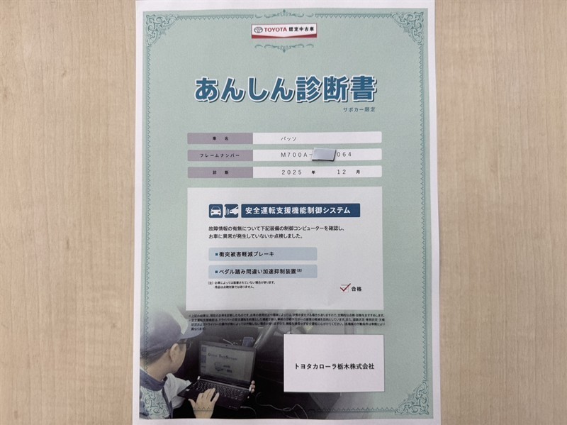 - 「定期点検整備なし(要整備箇所あり)」の場合、整備箇所につきましては、販売店へお問合せください。