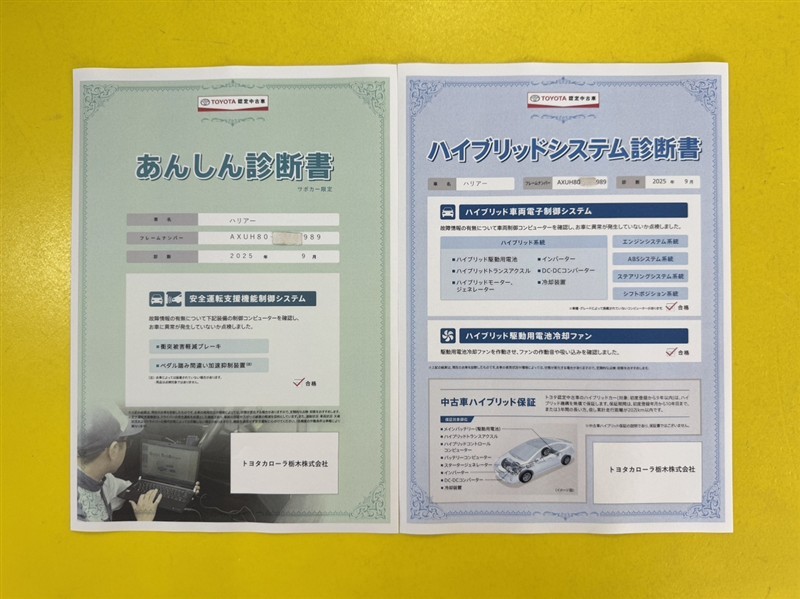 - 「定期点検整備なし(要整備箇所あり)」の場合、整備箇所につきましては、販売店へお問合せください。