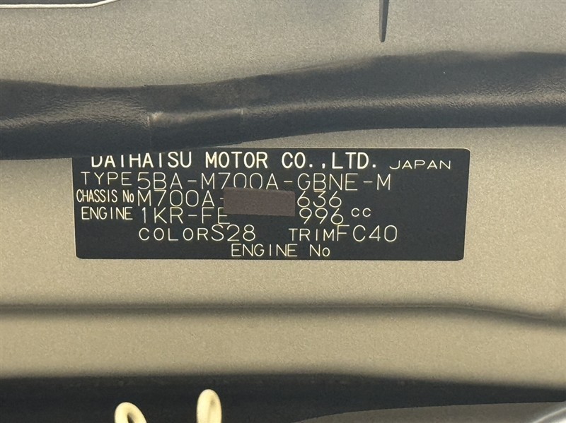 店舗管理ナンバー【332010761395】車台番号(下3桁)【636】