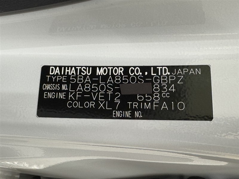 店舗管理ナンバー【332010857589】車台番号(下3桁)【834】
