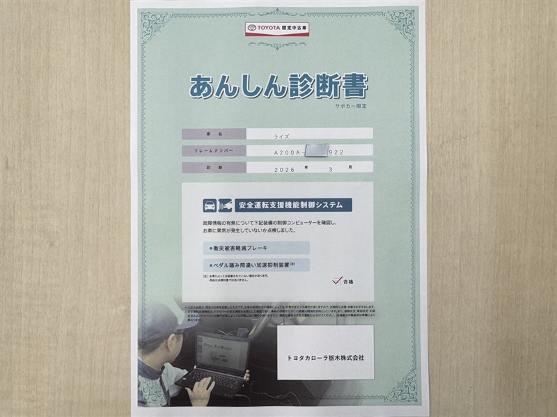 - 「定期点検整備なし(要整備箇所あり)」の場合、整備箇所につきましては、販売店へお問合せください。