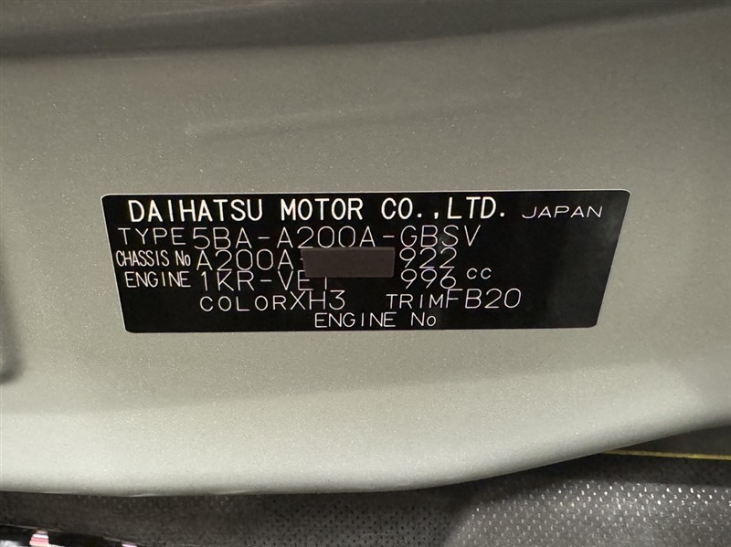 店舗管理ナンバー【332011045821】車台番号(下3桁)【922】