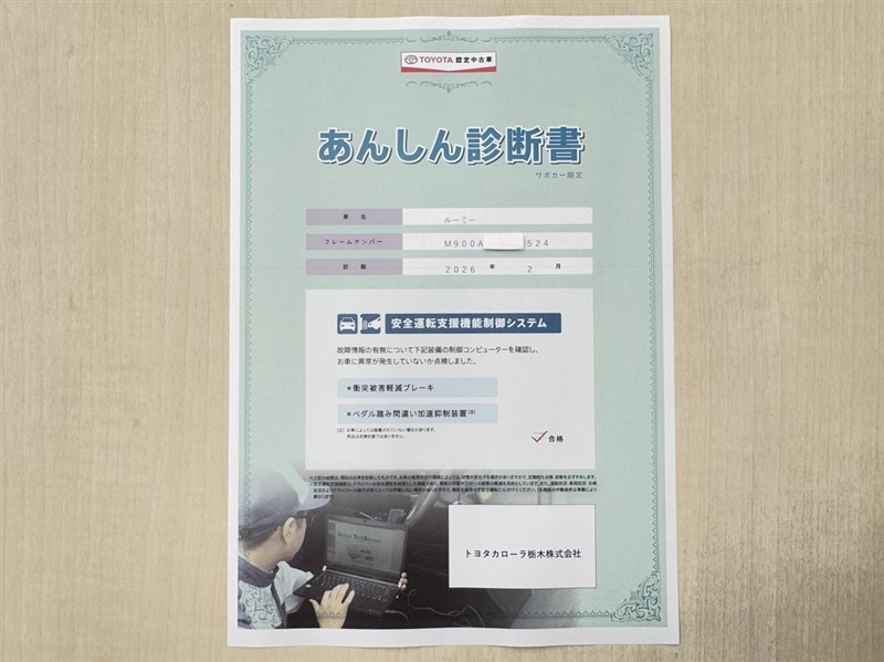 - 「定期点検整備なし(要整備箇所あり)」の場合、整備箇所につきましては、販売店へお問合せください。