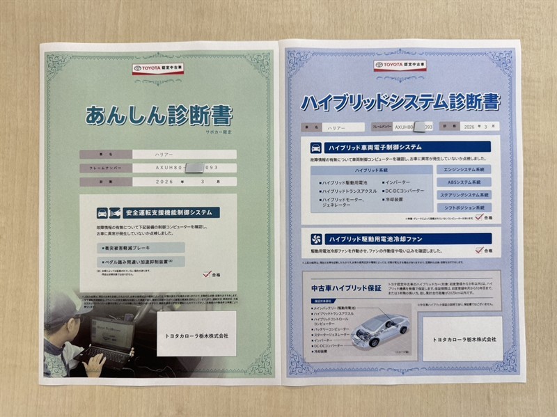 - 表示項目・方法・運用体制等について、自動車公正取引協議会の定める基準を満たした「トヨタU-Car品質評価制度」に基づき作成しております。