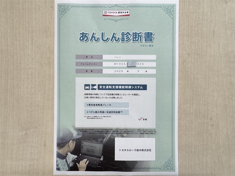 - 「定期点検整備なし(要整備箇所あり)」の場合、整備箇所につきましては、販売店へお問合せください。