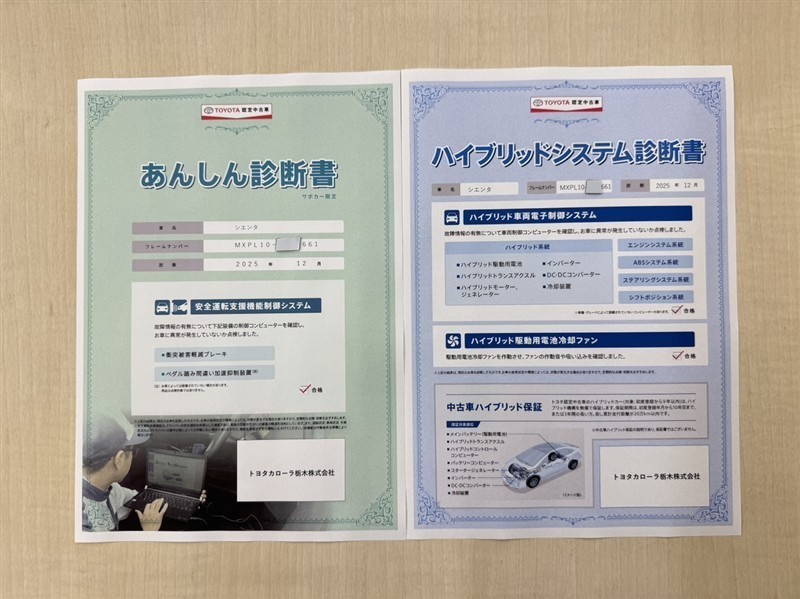 - 「定期点検整備なし(要整備箇所あり)」の場合、整備箇所につきましては、販売店へお問合せください。