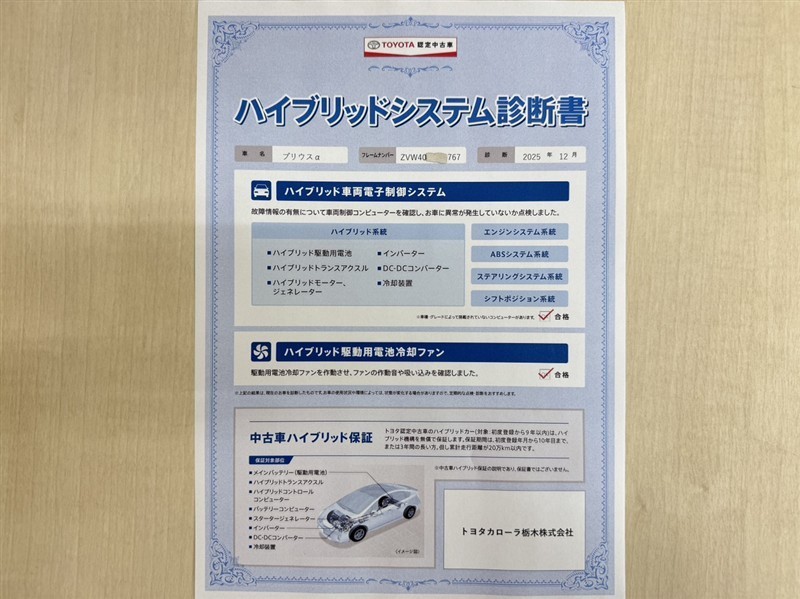 | 保証内容※1 | 保証付:ロングラン保証1年<走行距離無制限> +ハイブリッド保証<保証期間は初度登録年月から10年目まで、もしくは3年間のいずれか長い方。但し走行距離20万キロまで> |