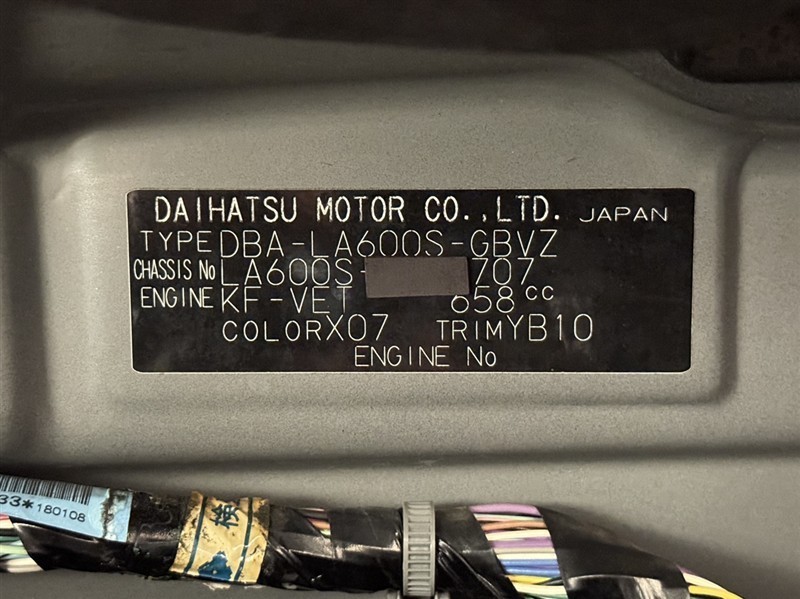 店舗管理ナンバー【332011684416】車台番号(下3桁)【707】