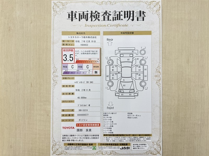 店舗管理ナンバー【332011684432】車台番号(下3桁)【577】
