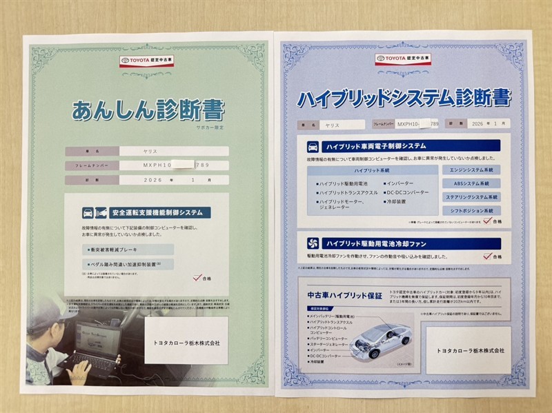 - 表示項目・方法・運用体制等について、自動車公正取引協議会の定める基準を満たした「トヨタU-Car品質評価制度」に基づき作成しております。