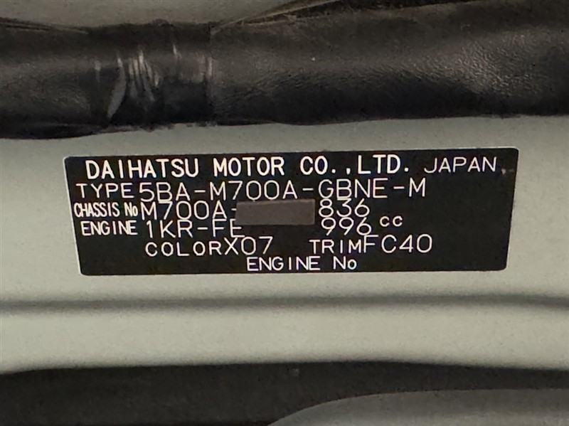 店舗管理ナンバー【332012024355】車台番号(下3桁)【836】