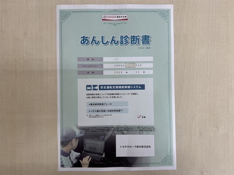 - 「定期点検整備なし(要整備箇所あり)」の場合、整備箇所につきましては、販売店へお問合せください。