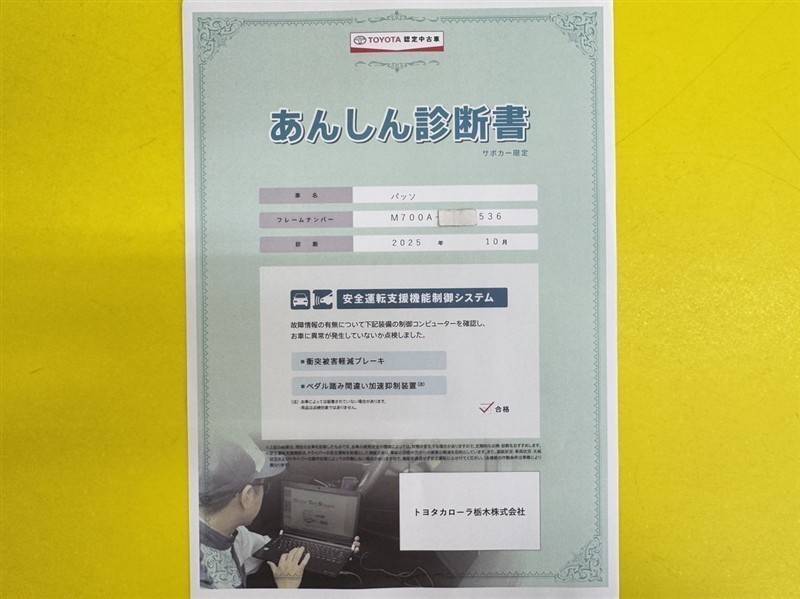 - 「定期点検整備なし(要整備箇所あり)」の場合、整備箇所につきましては、販売店へお問合せください。