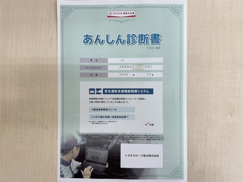 - 「定期点検整備なし(要整備箇所あり)」の場合、整備箇所につきましては、販売店へお問合せください。