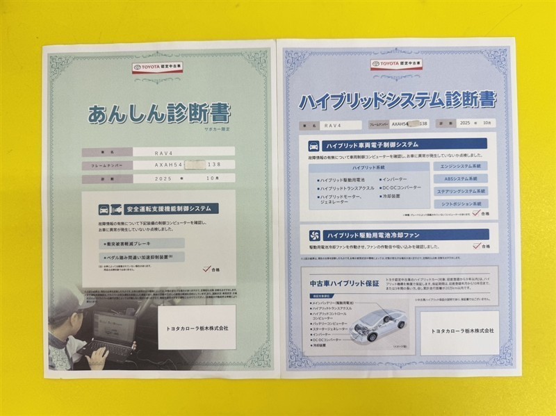- 表示項目・方法・運用体制等について、自動車公正取引協議会の定める基準を満たした「トヨタU-Car品質評価制度」に基づき作成しております。